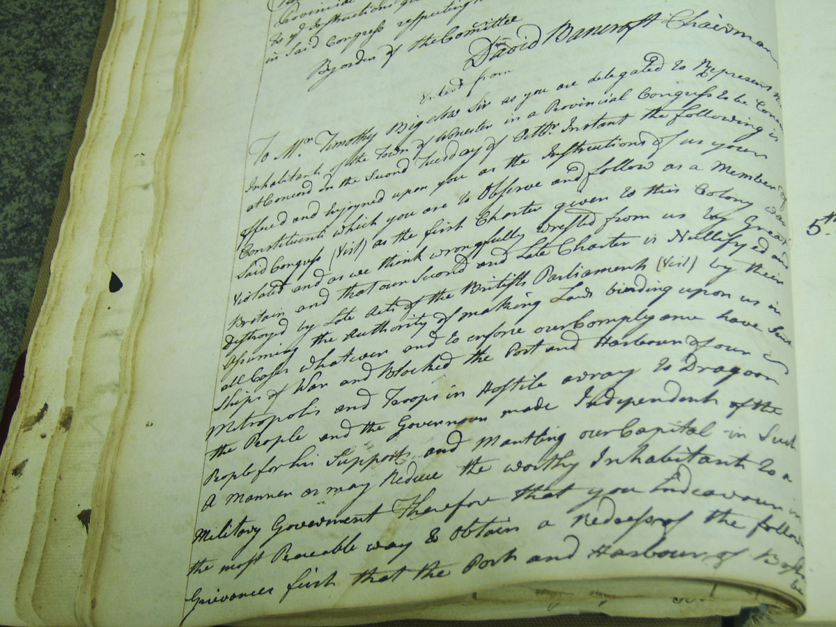 On October 4,1774, the Worcester (Massachusetts) Town Meeting issued instructions to blacksmith Timothy Bigelow, whom it had chosen for its representative to the forthcoming Provincial Congress: