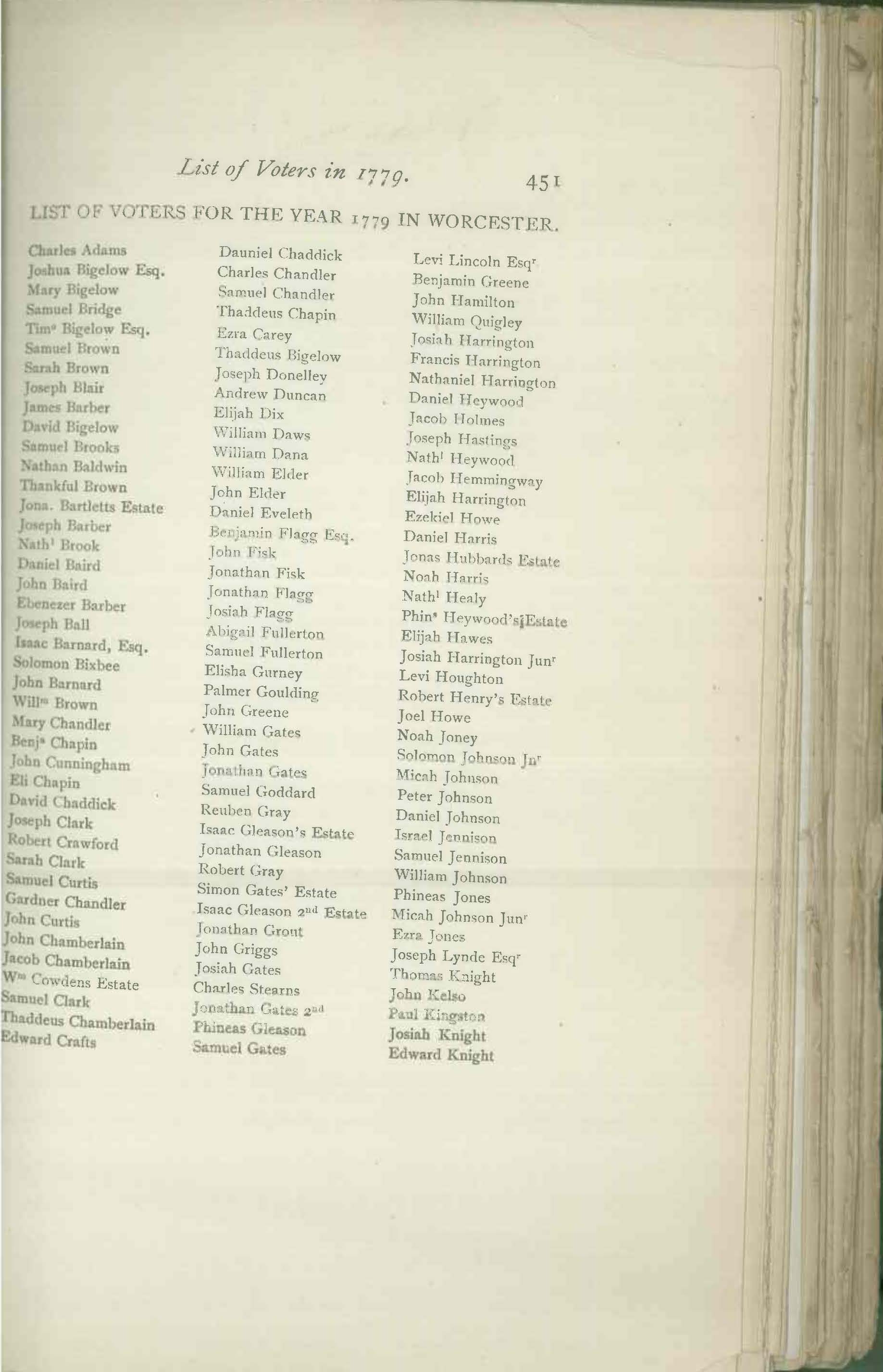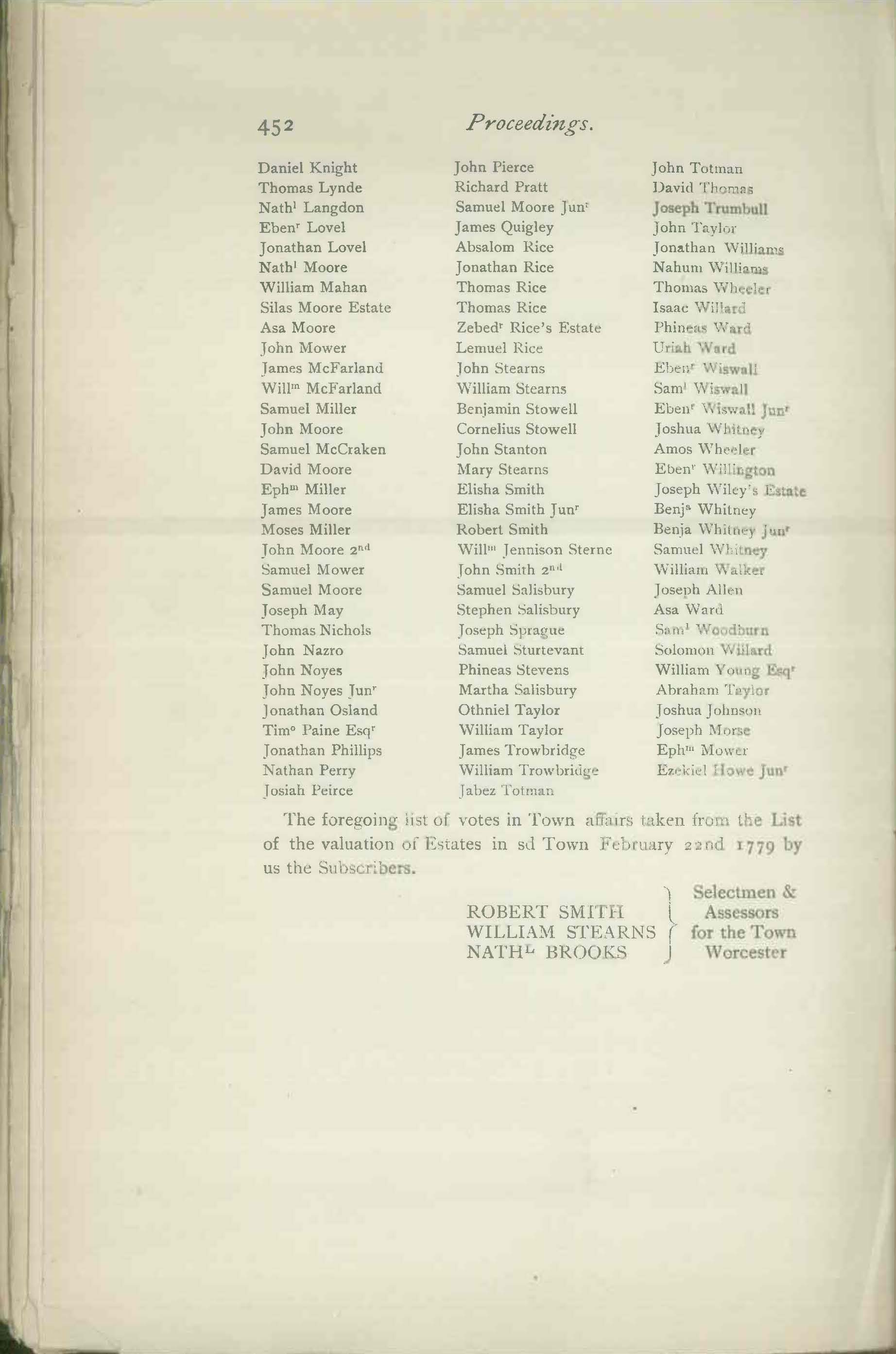 This list is reproduced in the Worcester Society of Antiquity, Proceedings, 16 (1899): 451-52.